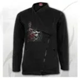 Life and Death, the two polar-opposites of the spectrum, yet so closely and eternally entangled. All-over printed religious iconography inspired garment with fully tattooed sleeves and chest.